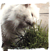 Nieraz widzi siê kota, który bierze do pyszczka d³ugie ¼d¼b³o trawy, gryzie je i ¿uje. Koty trzymane w mieszkaniach, nie wychodz±ce na dwór, zamiast trawy przygryzaj± czasem ro¶liny doniczkowe. Przez ca³e lata panowa³o prze¶wiadczenie, ¿e trawa jest ¶rodkiem przeczyszczaj±cym, za¿ywanym by pozbyæ siê zbitej sier¶ci zalegaj±cych w przewodzie pokarmowym. Niektórzy uwa¿aj±, ¿e jedzenie trawy ma prowokowaæ u kota wymioty. Jednak najnowsze i najbardziej wiarygodne badania wykazuj±, ¿e koty ¿uj± trawê g³ównie po to, aby pozyskaæ ¶ladowe ilo¶ci niezbêdnej substancji, której nie zawiera miêso. Jest to kwas foliowy. Niedobór tego kwasu u kotów powoduje zahamowanie wzrostu i anemiê.